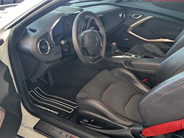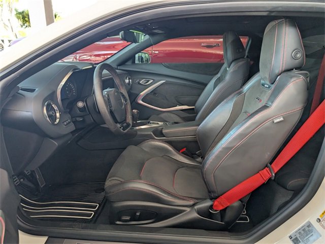 WE DELIVER TO YOUR HOME OR OFFICE !! Preferred Equipment Group ZL1 (Rear Park Assist), Chevrolet Certified Pre-Owned Certified, 4-Wheel Disc Brakes, 6-Way Power Front Passenger Seat Adjuster, 8-Way Power Driver Seat Adjuster, 9 Speakers, ABS brakes, Adaptive suspension, Air Conditioning, All-Weather Cargo Mat w/Camaro Logo (LPO), All-Weather Floor Mats, Alloy wheels, AM/FM radio: SiriusXM with 360L, Apple CarPlay/Android Auto, Auto-dimming door mirrors, Automatic temperature control, Bluetooth® For Phone, Bose Premium 9-Speaker Audio System Feature, Brake assist, Brembo 4-Wheel Performance Disc Brakes, Bumpers: body-color, Compass, Delay-off headlights, Driver door bin, Driver vanity mirror, Dual front impact airbags, Dual front side impact airbags, Electronic Stability Control, Exterior Parking Camera Rear, Four wheel independent suspension, Front anti-roll bar, Front Bucket Seats, Front Center Armrest, Front dual zone A/C, Front reading lights, Fully automatic headlights, Heads-Up Display, Heated door mirrors, Heated Driver & Front Passenger Seats, Heated front seats, Heated steering wheel, High-Intensity Discharge Headlights, Illuminated entry, Knee airbag, Leather-Trimmed Seat Trim w/Sueded Inserts, Low tire pressure warning, Memory seat, Occupant sensing airbag, Outside temperature display, Overhead airbag, Panic alarm, Passenger door bin, Passenger vanity mirror, Power door mirrors, Power driver seat, Power passenger seat, Power steering, Power Sunroof, Power windows, Premium audio system: Chevrolet Infotainment System, Radio data system, Radio: Chevrolet Infotainment 3 Plus System, Rear anti-roll bar, Rear window defroster, RECARO Performance Front Bucket Seats, Red Seat Belt Color, Remote keyless entry, Security system, SiriusXM w/360L, Speed control, Speed-sensing steering, Spoiler, Sport steering wheel, Steering wheel mounted audio controls, Tachometer, Telescoping steering wheel, Tilt steering wheel, Tire Inflation Kit, Traction control, Trip computer, Variably intermittent wipers, Ventilated Driver & Front Passenger Seats, Ventilated front seats, Voltmeter, and Wheels: 20 x 10 Fr & 20 x 11 Rr Dark Graphite. Recent Arrival!