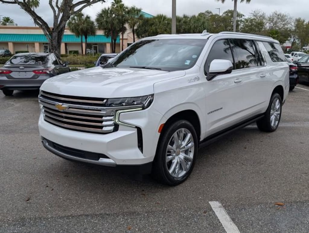 Certified. Iridescent Pearl Tricoat 2023 Chevrolet Suburban High Country 4WD 10-Speed Automatic with Overdrive EcoTec3 6.2L V8WE DELIVER TO YOUR HOME OR OFFICE !! Preferred Equipment Group 3LZ (15 Diagonal Multi-Color Head-Up Display, 1st & 2nd Row Color-Keyed Carpeted Floor Mats, 2-Speed Active Electronic AutoTrac Transfer Case, 3rd Row 60/40 Power-Folding Split-Bench, Bose 10-Speaker Surround w/CenterPoint, Bright Front & Rear Door Sill Plates, Chrome Door Handles w/Body-Color Strip, Color-Keyed Carpeting Floor Covering, Driver & Front Outboard Passenger Airbags, Dual Exhaust System, Enhanced Automatic Emergency Braking, Enhanced Driver Information Center, Floor Console, Hands-Free Rear Power Programmable Liftgate, HD Surround Vision, Heated & Ventilated Driver & Front Passenger Seats, Heated 2nd Row Outboard Seats, Heated Driver & Front Passenger Seats, Heated Steering Wheel, Hill Descent Control, Infotainment Display, Inside Rearview Auto-Dimming Rear Camera Mirror, Lane Change Alert w/Side Blind Zone Alert, LED Daytime Running Lamps, Memory Settings, Outside Heated Power-Adjustable Mirrors, Power Release 2nd Row Bucket Seats, Power Tilt & Telescopic Steering Column, Rear Camera Mirror Washer, Rear Cross Traffic Alert, Rear Pedestrian Alert, Remote Start, Safety Alert Seat, SiriusXM Radio w/360L, Universal Home Remote, Wireless Charging, and Wrapped Steering Wheel), Premium Package 2 (Dual-Pane Power Panoramic Sunroof and Power-Retractable Assist Steps), Chevrolet Certified Pre-Owned Certified, 10 Speakers, 3.23 Rear Axle Ratio, 3rd row seats: split-bench, 4-Wheel Disc Brakes, ABS brakes, Adaptive Cruise Control, Adaptive suspension, Air Conditioning, Alloy wheels, AM/FM radio: SiriusXM with 360L, Apple CarPlay/Android Auto, Auto High-beam Headlights, Auto-dimming door mirrors, Auto-dimming Rear-View mirror, Auto-leveling suspension, Automatic temperature control, Brake assist, Bumpers: body-color, Compass, Delay-off headlights, Driver door bin, Driver vanity mirror, Dual front impact airbags, Dual front side impact airbags, Electronic Stability Control, Emergency communication system: OnStar and Chevrolet connected services capable, Exterior Parking Camera Rear, Four wheel independent suspension, Front anti-roll bar, Front Bucket Seats, Front Center Armrest, Front dual zone A/C, Front reading lights, Fully automatic headlights, Garage door transmitter, Heads-Up Display, Heated door mirrors, Heated front seats, Heated rear seats, Heated steering wheel, Illuminated entry, Low tire pressure warning, Magnetic Ride Control Suspension, Memory seat, Navigation System, Not Equipped w/4-Way Driver & Fr Pass Pwr Lumbar, Occupant sensing airbag, Outside temperature display, Overhead airbag, Overhead console, Panic alarm, Passenger door bin, Passenger vanity mirror, Perforated Leather Seating Surfaces, Power door mirrors, Power driver seat, Power Liftgate, Power passenger seat, Power steering, Power windows, Premium audio system: Chevrolet Infotainment 3 Premium, Radio: Chevrolet Infotainment 3 Premium System, Rain sensing wipers, Rear air conditioning, Rear anti-roll bar, Rear reading lights, Rear window defroster, Rear window wiper, Remote keyless entry, Roof rack: rails only, Security system, Speed control, Speed-sensing steering, Split folding rear seat, Spoiler, Steering wheel memory, Steering wheel mounted audio controls, Tachometer, Telescoping steering wheel, Tilt steering wheel, Traction control, Trip computer, Turn signal indicator mirrors, Variably intermittent wipers, Ventilated front seats, Voltmeter, Wheel Locks (Set of 4) (LPO), and Wheels: 22 x 9 Sterling Silver Premium Painted. Recent Arrival! Odometer is 21233 miles below market average!Chevrolet Certified Pre-Owned Details:* 172 Point Inspection* Powertrain Limited Warranty: 72 Month/100,000 Mile (whichever comes first) from original in-service date* Transferable Warranty* Limited Warranty: 12 Month/12,000 Mile (whiche