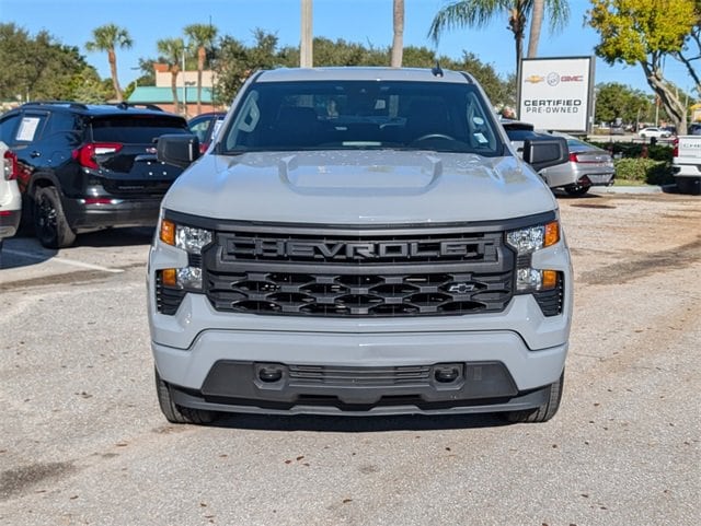Certified. Slate Gray Metallic 2024 Chevrolet Silverado 1500 Custom RWD 8-Speed Automatic 2.7L I4 Turbocharged DOHC 16V LEV3-SULEV30 310hp 8-Speed Automatic, Black Cloth.