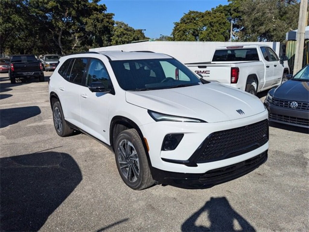 WE DELIVER TO YOUR HOME OR OFFICE !!! Preferred Equipment Group 1SM, FWD, 12 Speakers, 3rd row seats: split-bench, 4-Wheel Disc Brakes, ABS brakes, Air Conditioning, Alloy wheels, AM/FM radio: SiriusXM with 360L, Auto High-beam Headlights, Auto-dimming door mirrors, Auto-dimming Rear-View mirror, Automatic temperature control, Bose Premium 12-Speaker Audio System, Brake assist, Bumpers: body-color, Compass, Delay-off headlights, Driver 4-Way Power Lumbar Seat Adjuster, Driver 8-Way Power Seat Adjuster, Driver door bin, Driver vanity mirror, Dual front impact airbags, Dual front side impact airbags, Electronic Stability Control, Emergency communication system: OnStar and Buick connected services capable, Four wheel independent suspension, Front anti-roll bar, Front Bucket Seats, Front Center Armrest, Front dual zone A/C, Front Passenger 4-Way Power Lumbar Seat Adjuster, Front Passenger 6-Way Power Seat Adjuster, Front reading lights, Fully automatic headlights, Heated door mirrors, Heated Driver & Front Passenger Seats, Heated front seats, Heated steering wheel, Illuminated entry, Leather steering wheel, Low tire pressure warning, Navigation System, Occupant sensing airbag, Outside temperature display, Overhead airbag, Overhead console, Panic alarm, Passenger door bin, Passenger vanity mirror, Perforated Leatherette Seat Trim, Power door mirrors, Power driver seat, Power Liftgate, Power passenger seat, Power steering, Power windows, Premium audio system: Buick Infotainment System, Radio data system, Radio: Infotainment Center, Rear air conditioning, Rear anti-roll bar, Rear reading lights, Rear side impact airbag, Rear window defroster, Rear window wiper, Remote keyless entry, Security system, SiriusXM w/360L Trial Subscription, Speed control, Speed-sensing steering, Spoiler, Sport steering wheel, Steering wheel mounted audio controls, Tachometer, Telescoping steering wheel, Tilt steering wheel, Traction control, Trip computer, Turn signal indicator mirrors, Variably intermittent wipers, Voltmeter, Wheels: 20 Alloy w/High Gloss Black, Wireless Apple CarPlay, and Wireless Google Android Auto. Price includes: $500 - GM First Responder Cash Allowance Program. Exp. 01/02/2026