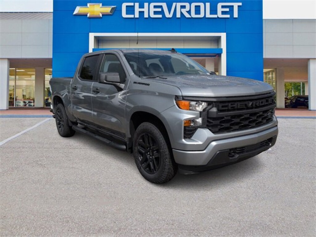 Sterling Gray Metallic 2026 Chevrolet Silverado 1500 Custom RWD 8-Speed Automatic 2.7L I4 Turbocharged DOHC 16V LEV3-SULEV30 310hp 8-Speed Automatic, Black Cloth.WE DELIVER TO YOUR HOME OR OFFICE !!! Custom Convenience Package (Electric Rear-Window Defogger, EZ Lift Power Lock & Release Tailgate, LED Cargo Area Lighting, Remote Vehicle Starter System, and Theft Deterrent System (Unauthorized Entry)), Custom Value Package, Dark Essentials Package (LPO) (Black Name Plates (LPO)), High Capacity Suspension Package, Preferred Equipment Group 1CX (10-Way Power Driver Seat w/Lumbar, 120-Volt Bed Mounted Power Outlet, 120-Volt Interior Power Outlet, 3.5 Monochromatic Display Driver Info Center, Bluetooth® For Phone, Color-Keyed Carpeting Floor Covering, Deep-Tinted Glass, Dual Rear USB Ports (Charge Only), Electronic Cruise Control, Front Frame-Mounted Black Recovery Hooks, Front Rubberized Vinyl Floor Mats, HD Rear Vision Camera, Manual Tilt Wheel Steering Column, OnStar Services Capable, Power Front Windows w/Driver Express Up/Down, Power Front Windows w/Passenger Express Down, Power Rear Windows w/Express Down, Rear 60/40 Folding Bench Seat (Folds Up), Rear Rubberized-Vinyl Floor Mats, Remote Keyless Entry, SiriusXM Trial Subscription, Standard Tailgate, Teen Driver, Tire Pressure Monitoring System, and Wi-Fi Hot Spot Capable), Trailering Package (Hitch Guidance), TurboMax Blackout Package (4 Black Round Assist Steps (LPO), Black Chrome Exhaust Tip (LPO), and Wheels: 20 x 9 High Gloss Black Painted Alum), 8-Speed Automatic, Black Cloth, 3.42 Rear Axle Ratio, 4-Wheel Disc Brakes, 40/20/40 Front Split-Bench Seat, 6 Speakers, 6-Speaker Audio System, ABS brakes, Air Conditioning, Alloy wheels, AM/FM radio: SiriusXM, Apple CarPlay/Android Auto, Auto High-beam Headlights, Automatic Emergency Braking, Black Tailgate CHEVROLET Lettering (LPO), Brake assist, Bumpers: body-color, Chevytec Spray-On Black Bedliner, Cloth Seat Trim, Compass, Delay-off headlights, Driver door bin, Driver vanity mirror, Dual front impact airbags, Dual front side impact airbags, Electronic Stability Control, Emergency communication system: OnStar, Following Distance Indicator, Forward Collision Alert, Front anti-roll bar, Front Black Bowtie Emblem (LPO), Front Center Armrest w/Storage, Front Pedestrian Braking, Front reading lights, Front wheel independent suspension, Fully automatic headlights, Heated door mirrors, Illuminated entry, IntelliBeam Automatic High Beam On/Off, Lane Keep Assist w/Lane Departure Warning, Low tire pressure warning, Occupant sensing airbag, Outside temperature display, Overhead airbag, Overhead console, Panic alarm, Passenger door bin, Passenger vanity mirror, Power door mirrors, Power driver seat, Power steering, Power windows, Premium audio system: Chevrolet Infotainment 3, Radio data system, Radio: Chevrolet Infotainment 3 System, Rear reading lights, Rear step bumper, Rear window defroster, Remote keyless entry, Security system, Speed control, Speed-sensing steering, Split folding rear seat, Tachometer, Tilt steering wheel, Traction control, Trip computer, Variably intermittent wipers, Voltmeter, and Wheels: 20 x 9 Bright Silver Painted Aluminum. Price includes: $1000 - Chevrolet Select Market Bonus Cash. Exp. 12/01/2025 $1000 - GM Bonus Cash. Exp. 12/01/2025 $1750 - Chevrolet Consumer Cash Program. Exp. 12/01/2025