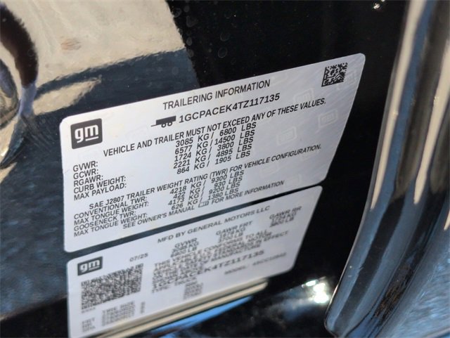 WE DELIVER TO YOUR HOME OR OFFICE !!! All Star Edition Plus (Wheels: 20 x 9 Painted Aluminum), Convenience Package (10-Way Power Driver Seat with Lumbar, 120-Volt Bed Mounted Power Outlet, 120-Volt Interior Power Outlet, Dual Rear USB Ports (charge Only), Dual-Zone Automatic Climate Control, Heated Driver and Front Outboard Passenger Seats, Heated Steering Wheel, Keyless Open and Start, LED Cargo Area Lighting, Manual Tilt/Telescoping Steering Column, and Wrapped Steering Wheel), Convenience Package II (Hitch Guidance with Hitch View, in-Vehicle Trailering System App, Power Sliding Rear Window with Rear Defogger, and Universal Home Remote), High Capacity Suspension Package, Preferred Equipment Group 1LT (12.3 Multicolor Reconfigurable Digital Display, 40/20/40 Front Split-Bench Seat, All-Star Edition, Auto-Locking Rear Differential, Bluetooth® For Phone, Chrome Mirror Caps, Cloth Seat Trim, Color-Keyed Carpeting Floor Covering, Deep-Tinted Glass, Electronic Cruise Control, EZ Lift Power Lock and Release Tailgate, Front Rubberized Vinyl Floor Mats, HD Rear Vision Camera, Heated Power-Adjustable Outside Mirrors, Inside Rearview Mirror with Tilt, Integrated Trailer Brake Controller, OnStar Services Capable, Power Front Windows with Driver Express Up/Down, Power Front Windows with Passenger Express Down, Power Rear Windows with Express Down, Rear 60/40 Folding Bench Seat (folds Up), Rear Rubberized-Vinyl Floor Mats, SiriusXM with 360L Trial Subscription, Standard Tailgate, Steering Wheel Audio Controls, Teen Driver, Tire Pressure Monitoring System, Wheels: 17 x 8 Bright Silver Painted Aluminum, and Wi-Fi Hot Spot Capable), Protection Package (Chevytec Spray-on Black Bedliner and Rear Wheelhouse Liners), Remote Start Package (Electric Rear-Window Defogger, Remote Vehicle Starter System, and Theft Deterrent System (unauthorized Entry)), Safety Package (Front Frame-Mounted Black Recovery Hooks, HD Surround Vision, Perimeter Lighting, Rear Cross Traffic Braking, Rear Pedestrian Alert, Trailer Camera Provisions, Trailer Side Blind Zone Alert, and Ultrasonic Front and Rear Park Assist), Standard Suspension Package, Trailering Package (Hitch Guidance), 8-Speed Automatic, Black Cloth, 220 Amp Alternator, 3.42 Rear Axle Ratio, 4-Wheel Disc Brakes, 6 Speakers, 6-Speaker Audio System, ABS brakes, Air Conditioning, All-Weather Floor Liner, Alloy wheels, AM/FM radio: SiriusXM with 360L, Apple CarPlay/Android Auto, Auto High-beam Headlights, Automatic Emergency Braking, Automatic temperature control, Brake assist, Bumpers: chrome, Compass, Delay-off headlights, Driver door bin, Driver vanity mirror, Dual front impact airbags, Dual front side impact airbags, Electronic Stability Control, Emergency communication system: OnStar, Following Distance Indicator, Forward Collision Alert, Front anti-roll bar, Front Center Armrest w/Storage, Front dual zone A/C, Front Pedestrian Braking, Front reading lights, Front wheel independent suspension, Fully automatic headlights, Heated door mirrors, Heated front seats, Heated steering wheel, Illuminated entry, IntelliBeam Automatic High Beam on/Off, Lane Keep Assist with Lane Departure Warning, Low tire pressure warning, Occupant sensing airbag, Outside temperature display, Overhead airbag, Overhead console, Panic alarm, Passenger door bin, Passenger vanity mirror, Power door mirrors, Power driver seat, Power steering, Power windows, Premium audio system: Chevrolet Infotainment 3 Premium, Radio data system, Radio: Chevrolet Infotainment 3 Premium System, Rear reading lights, Rear step bumper, Rear window defroster, Remote keyless entry, Security system, Speed control, Speed-sensing steering, S Price includes: $1000 - Chevrolet Select Market Bonus Cash. Exp. 02/02/2026 $1000 - GM Bonus Cash. Exp. 02/02/2026 $3000 - C