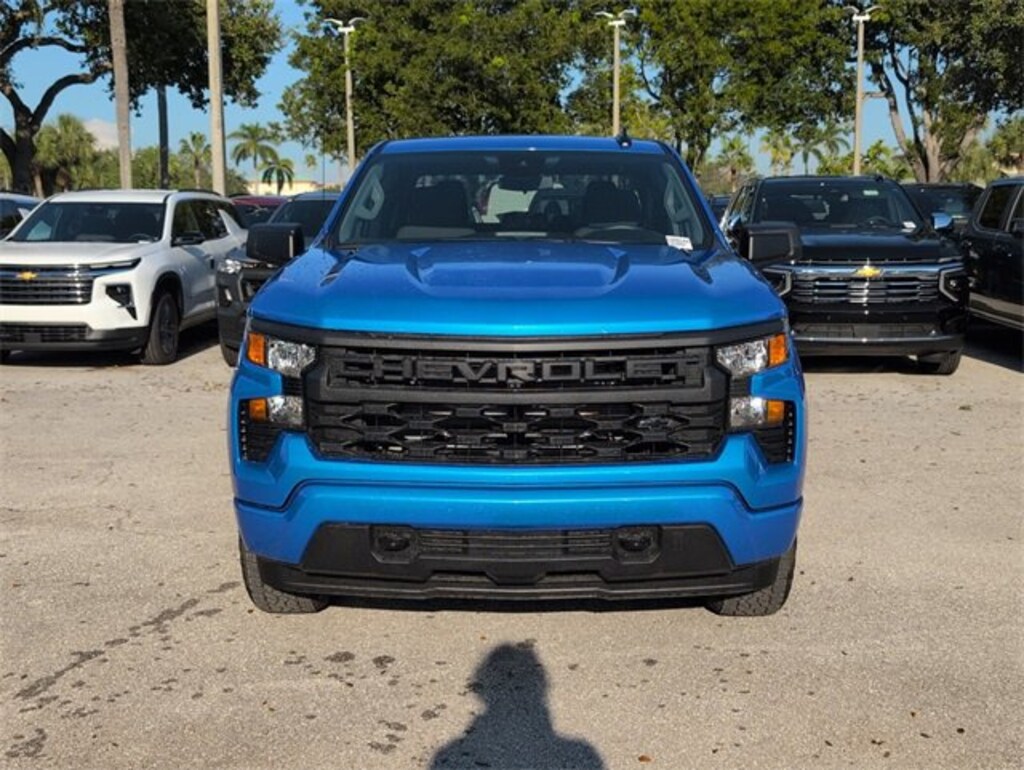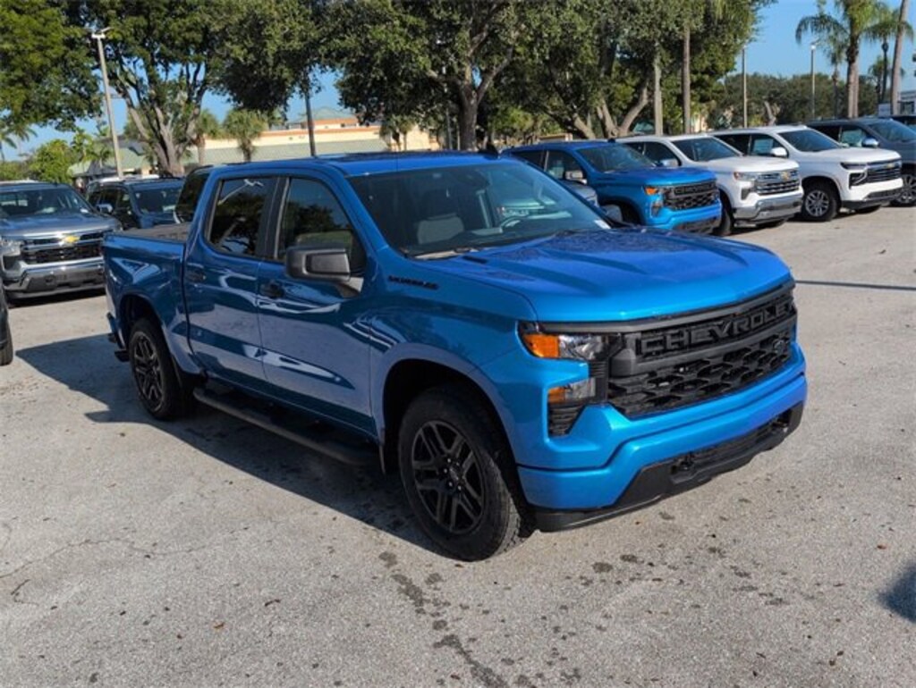 Riptide Blue Metallic 2026 Chevrolet Silverado 1500 Custom RWD 8-Speed Automatic 2.7L I4 Turbocharged DOHC 16V LEV3-SULEV30 310hp 8-Speed Automatic, Black Cloth.WE DELIVER TO YOUR HOME OR OFFICE !!! Custom Convenience Package (Electric Rear-Window Defogger, EZ Lift Power Lock & Release Tailgate, LED Cargo Area Lighting, Remote Vehicle Starter System, and Theft Deterrent System (Unauthorized Entry)), Custom Value Package, Dark Essentials Package (LPO) (Black Name Plates (LPO)), High Capacity Suspension Package, Preferred Equipment Group 1CX (10-Way Power Driver Seat w/Lumbar, 120-Volt Bed Mounted Power Outlet, 120-Volt Interior Power Outlet, 3.5 Monochromatic Display Driver Info Center, Bluetooth® For Phone, Color-Keyed Carpeting Floor Covering, Deep-Tinted Glass, Dual Rear USB Ports (Charge Only), Electronic Cruise Control, Front Frame-Mounted Black Recovery Hooks, Front Rubberized Vinyl Floor Mats, HD Rear Vision Camera, Manual Tilt Wheel Steering Column, OnStar Services Capable, Power Front Windows w/Driver Express Up/Down, Power Front Windows w/Passenger Express Down, Power Rear Windows w/Express Down, Rear 60/40 Folding Bench Seat (Folds Up), Rear Rubberized-Vinyl Floor Mats, Remote Keyless Entry, SiriusXM Trial Subscription, Standard Tailgate, Teen Driver, Tire Pressure Monitoring System, and Wi-Fi Hot Spot Capable), Trailering Package (Hitch Guidance), TurboMax Blackout Package (4 Black Round Assist Steps (LPO), Black Chrome Exhaust Tip (LPO), and Wheels: 20 x 9 High Gloss Black Painted Alum), 8-Speed Automatic, Black Cloth, 3.42 Rear Axle Ratio, 4-Wheel Disc Brakes, 40/20/40 Front Split-Bench Seat, 6 Speakers, 6-Speaker Audio System, ABS brakes, Air Conditioning, Alloy wheels, AM/FM radio: SiriusXM, Apple CarPlay/Android Auto, Auto High-beam Headlights, Automatic Emergency Braking, Black Tailgate CHEVROLET Lettering (LPO), Brake assist, Bumpers: body-color, Chevytec Spray-On Black Bedliner, Cloth Seat Trim, Compass, Delay-off headlights, Driver door bin, Driver vanity mirror, Dual front impact airbags, Dual front side impact airbags, Electronic Stability Control, Emergency communication system: OnStar, Following Distance Indicator, Forward Collision Alert, Front anti-roll bar, Front Black Bowtie Emblem (LPO), Front Center Armrest w/Storage, Front Pedestrian Braking, Front reading lights, Front wheel independent suspension, Fully automatic headlights, Heated door mirrors, Illuminated entry, IntelliBeam Automatic High Beam On/Off, Lane Keep Assist w/Lane Departure Warning, Low tire pressure warning, Occupant sensing airbag, Outside temperature display, Overhead airbag, Overhead console, Panic alarm, Passenger door bin, Passenger vanity mirror, Power door mirrors, Power driver seat, Power steering, Power windows, Premium audio system: Chevrolet Infotainment 3, Radio data system, Radio: Chevrolet Infotainment 3 System, Rear reading lights, Rear step bumper, Rear window defroster, Remote keyless entry, Security system, Speed control, Speed-sensing steering, Split folding rear seat, Tachometer, Tilt steering wheel, Traction control, Trip computer, Variably intermittent wipers, Voltmeter, and Wheels: 20 x 9 Bright Silver Painted Aluminum. Price includes: $1000 - Chevrolet Select Market Bonus Cash. Exp. 12/01/2025 $1000 - GM Bonus Cash. Exp. 12/01/2025 $1750 - Chevrolet Consumer Cash Program. Exp. 12/01/2025
