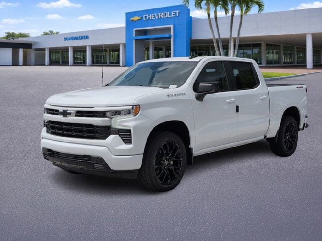 Summit White 2026 Chevrolet Silverado 1500 RST 4WD 10-Speed Automatic EcoTec3 5.3L V8 10-Speed Automatic, 4WD, Black Leather.