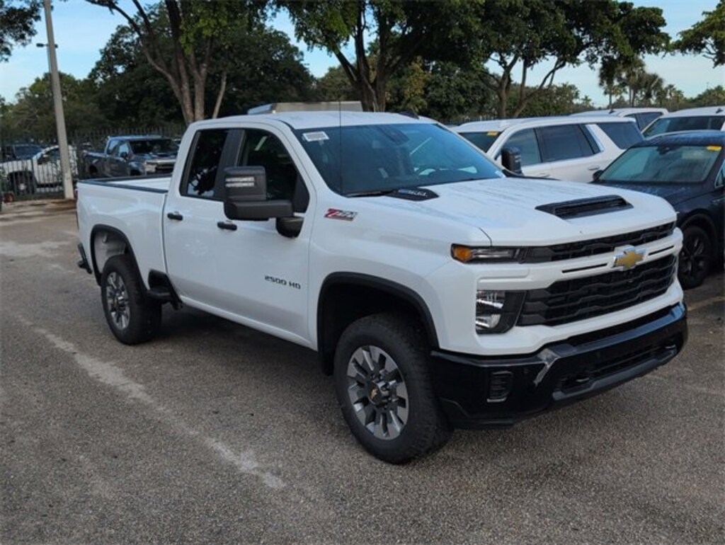 Summit White 2026 Chevrolet Silverado 2500HD Custom 4WD 10-Speed Automatic 6.6L V8 10-Speed Automatic, 4WD, Black Cloth.WE DELIVER TO YOUR HOME OR OFFICE !!! Custom Convenience Package (10-Way Power Driver Seat Adjuster w/Lumbar, 120-Volt Bed Mounted Power Outlet, 120-Volt Interior Power Outlet, Dual Rear USB Ports (Charge Only), Electric Rear-Window Defogger, EZ Lift Power Lock & Release Tailgate, LED Cargo Area Lighting, Remote Vehicle Starter System, and Unauthorized Entry Theft-Deterrent System), Custom Value Package (Auto-Dimming Inside Rear-View Mirror and Heated & Auto-Dimming Vertical Trailering Mirrors), CX Safety Package (Lane Change Alert w/Side Blind Zone Alert, Rear Cross Traffic Alert, and Ultrasonic Front & Rear Park Assist), Preferred Equipment Group 1CX (170 Amp Alternator, 2-Speed Electronic Shift Transfer Case, 3.5 Diagonal Monochromatic Display DIC, Black Mirror Caps, Bluetooth® For Phone, Chevrolet Connected Access Capable, Color-Keyed Carpeting Floor Covering, Compass, Deep-Tinted Glass, Electronic Cruise Control w/Set & Resume Speed, Front Rubberized Vinyl Floor Mats, HD Rear Vision Camera, Heated Vertical Trailering Mirrors, Locking Tailgate, Manual Tailgate Function w/No EZ Lift, Manual Tilt-Wheel Steering Column, OnStar Services Capable, Power Door Locks, Power Front Windows w/Driver Express Up/Down, Power Front Windows w/Passenger Express Down, Power Rear Windows w/Express Down, Push Button Start, Rear 60/40 Folding Bench Seat (Folds Up), Rear Rubberized Vinyl Floor Mats, Remote Keyless Entry, SiriusXM w/360L Trial Subscription, Standard Tailgate, Wi-Fi Hotspot Capable, and Wireless Phone Projection), Suspension Package, Z71 Off-Road Package (Hill Descent Control and Off-Road Suspension), 10-Speed Automatic, 4WD, Black Cloth, 3.73 Rear Axle Ratio, 4-Wheel Disc Brakes, 6 Speakers, 6-Speaker Audio System, 720 Cold-Cranking Amps Heavy-Duty Battery, ABS brakes, Air Conditioning, Alloy wheels, AM/FM radio: SiriusXM with 360L, Apple CarPlay/Android Auto, Auto High-beam Headlights, Brake assist, Cloth Seat Trim, Delay-off headlights, Driver door bin, Dual front impact airbags, Dual front side impact airbags, Durabed Pickup Bed, Electronic Stability Control, Emergency communication system: OnStar, Front 40/20/40 Split-Bench Seats w/Lockable Storage, Front anti-roll bar, Front Center Armrest w/Storage, Front reading lights, Front wheel independent suspension, Fully automatic headlights, Heated door mirrors, Illuminated entry, Low tire pressure warning, Occupant sensing airbag, Outside temperature display, Overhead airbag, Overhead console, Panic alarm, Passenger door bin, Passenger vanity mirror, Power door mirrors, Power steering, Power windows, Premium audio system: Chevrolet Infotainment 3, Radio: Chevrolet Infotainment 3 System, Rear reading lights, Rear step bumper, Remote keyless entry, Speed control, Split folding rear seat, Tachometer, Tilt steering wheel, Traction control, Trip computer, Turn signal indicator mirrors, Variably intermittent wipers, Voltmeter, and Wheels: 20 10-Spoke Machined Aluminum. Price includes: $1000 - Chevrolet Consumer Cash Program. Exp. 12/01/2025