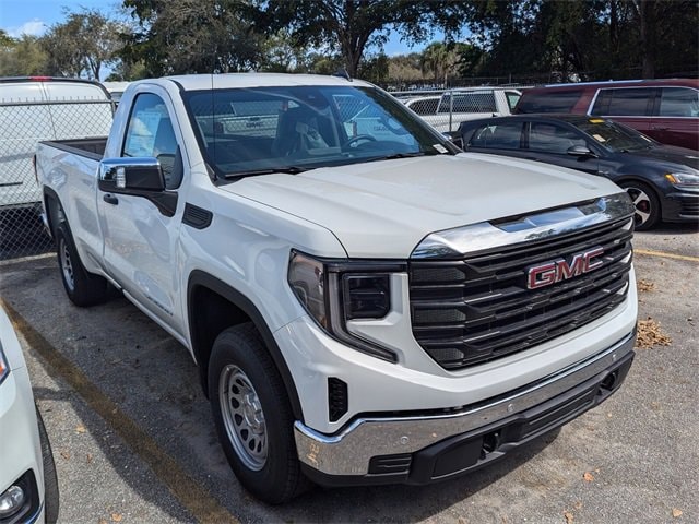 Summit White 2025 GMC Sierra 1500 Pro 4WD 10-Speed Automatic EcoTec3 5.3L V8 10-Speed Automatic, 4WD, Jet Black Vinyl.