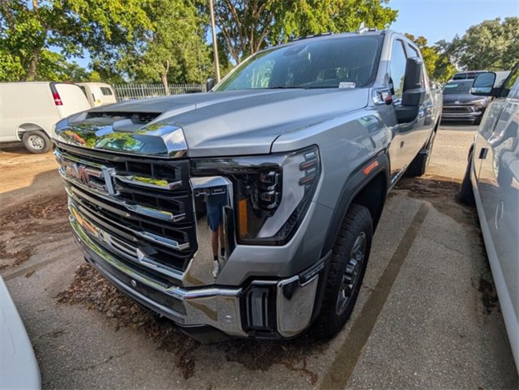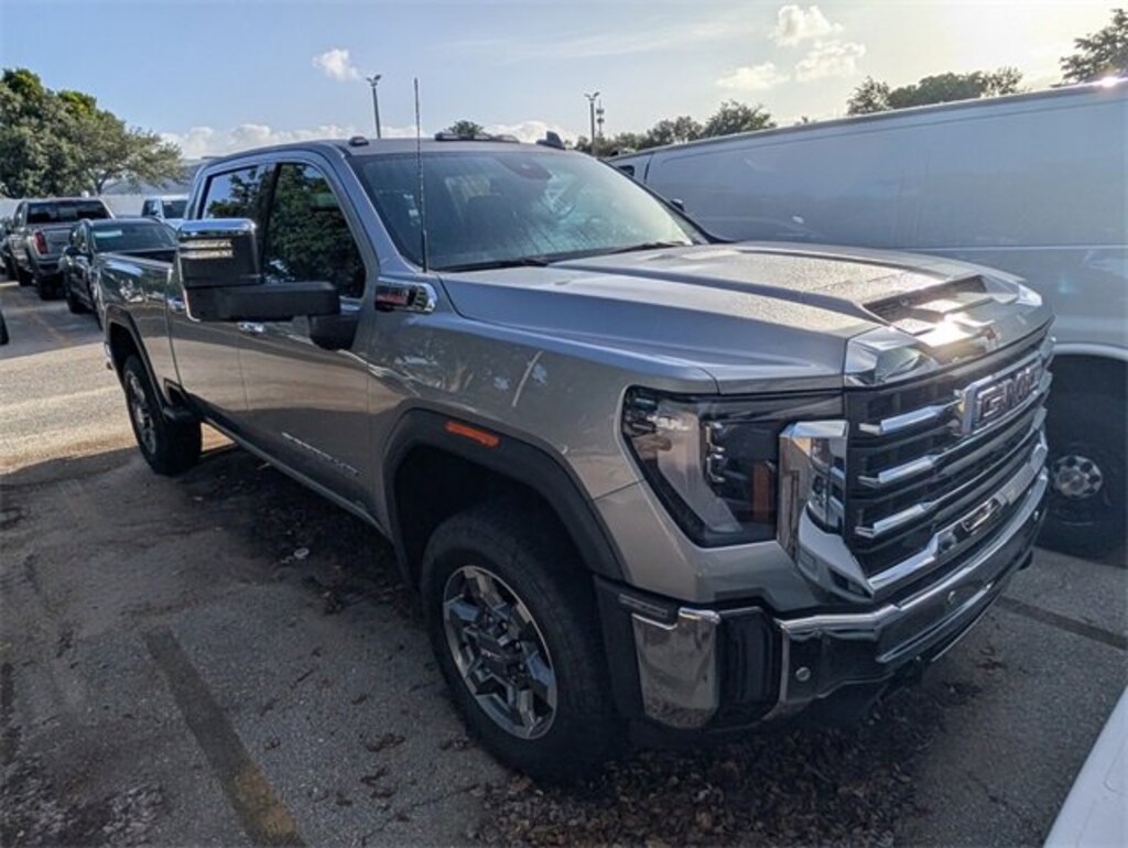 Sterling Metallic 2025 GMC Sierra 2500HD SLT 4WD 10-Speed Automatic Duramax 6.6L V8 Turbodiesel 10-Speed Automatic, 4WD, Black Leather.
