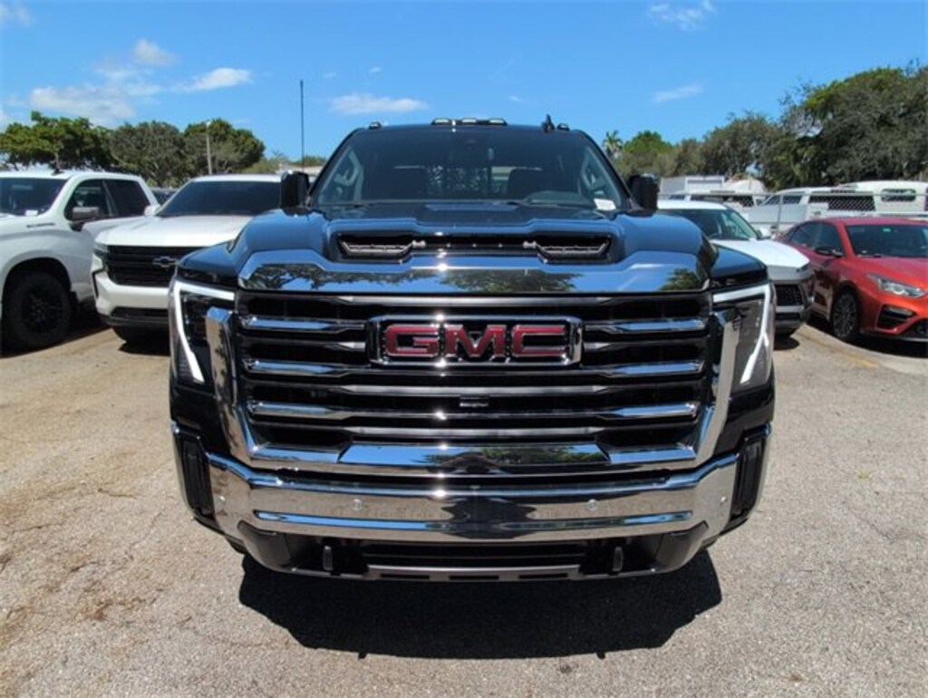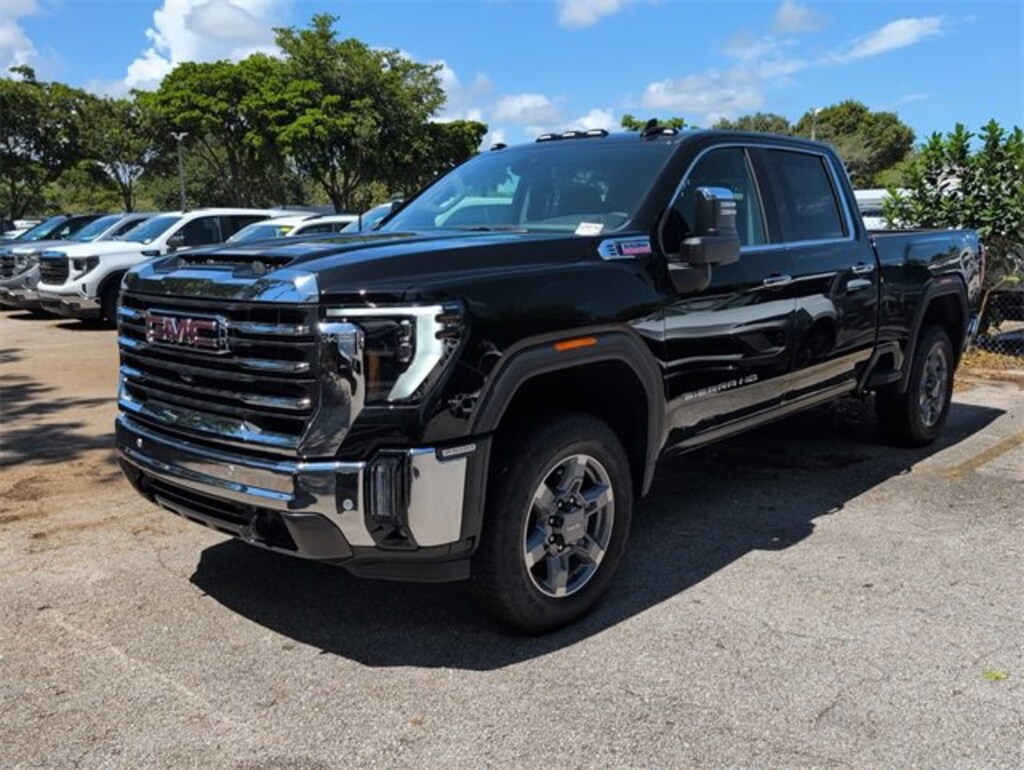 Onyx Black 2025 GMC Sierra 2500HD SLT 4WD 10-Speed Automatic Duramax 6.6L V8 Turbodiesel 10-Speed Automatic, 4WD, Black Leather.