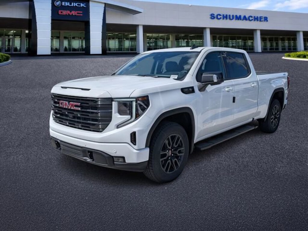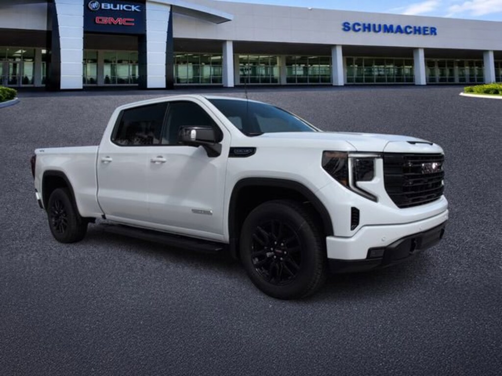 Summit White 2026 GMC Sierra 1500 Elevation 4WD 10-Speed Automatic EcoTec3 5.3L V8 10-Speed Automatic, 4WD, Black Leather.