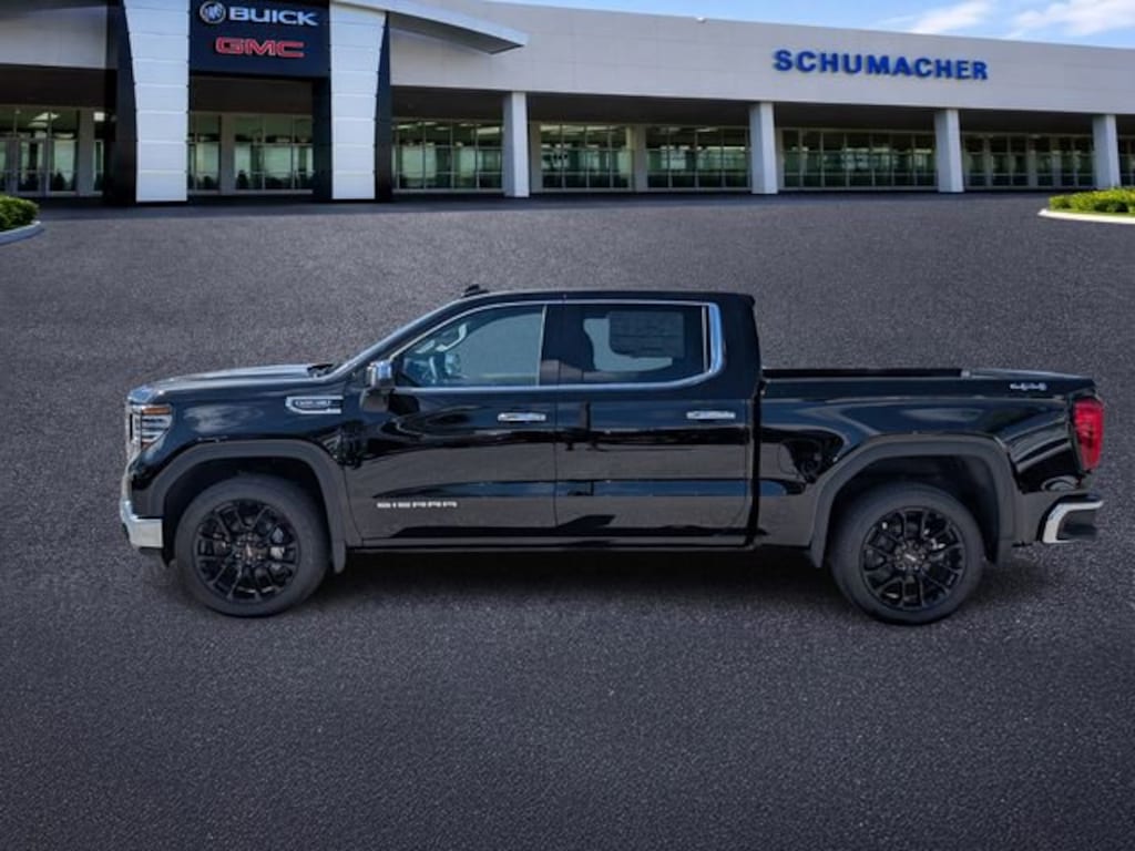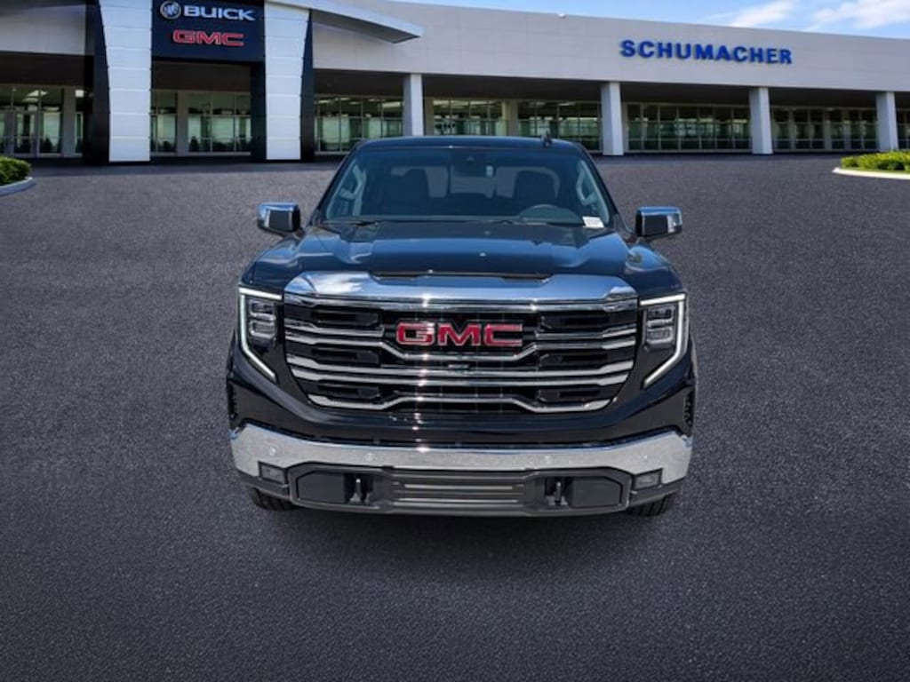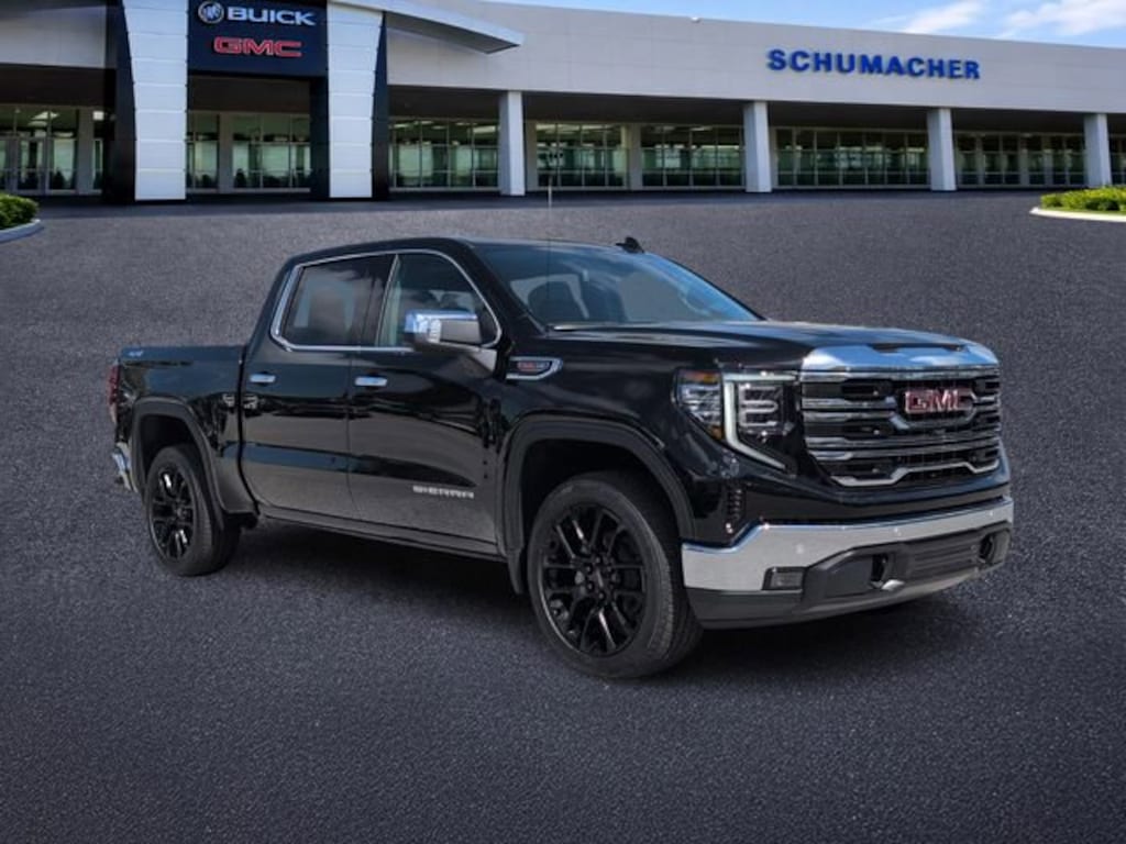 Onyx Black 2026 GMC Sierra 1500 SLT 4WD 10-Speed Automatic EcoTec3 6.2L V8 10-Speed Automatic, 4WD, Jet Black Leather.