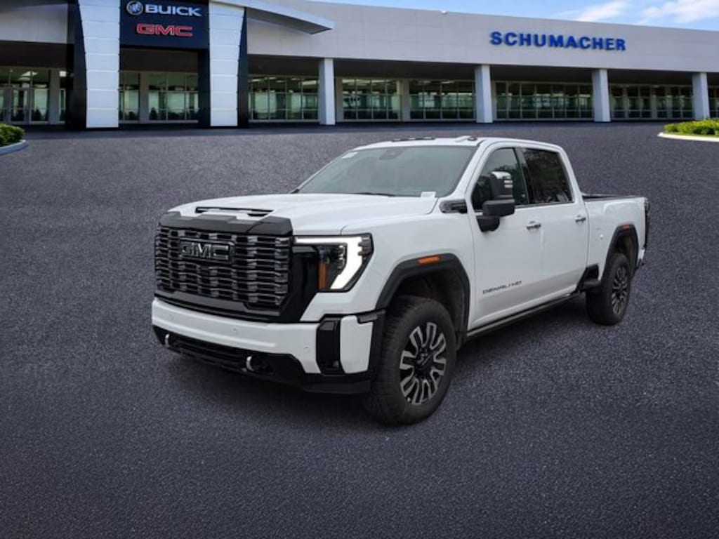 Summit White 2026 GMC Sierra 2500HD Denali Ultimate 4WD 10-Speed Automatic Duramax 6.6L V8 Turbodiesel 10-Speed Automatic, 4WD, Alpine Umber Leather.