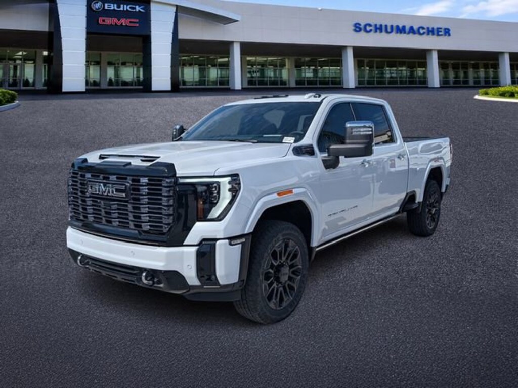 Glacier White Tricoat 2026 GMC Sierra 2500HD Denali Ultimate 4WD 10-Speed Automatic Duramax 6.6L V8 Turbodiesel 10-Speed Automatic, 4WD, Alpine Umber Leather.