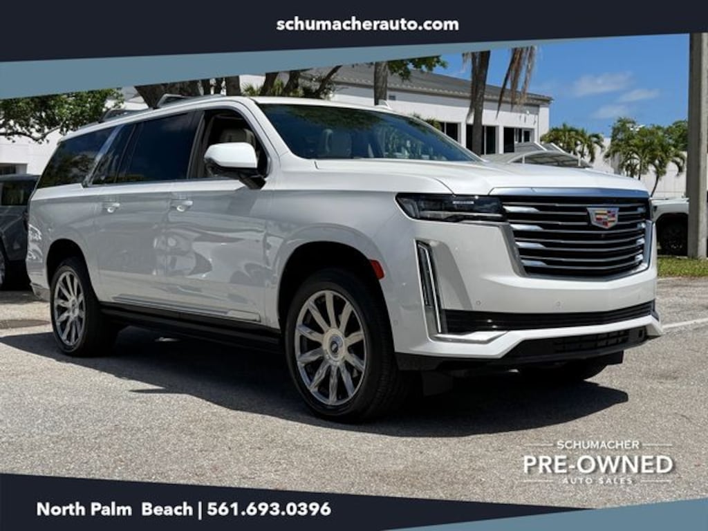 WE DELIVER TO YOUR HOME OR OFFICE !! Preferred Equipment Group 1SG (Adaptive Cruise Control, AKG Studio Reference 36-Speaker Audio System, Automatic Seat Belt Tightening, Door Lock & Latch Shields, Electronic Limited-Slip Differential, Enhanced Automatic Emergency Braking, Enhanced Automatic Parking Assist, Floor Console w/Covered Storage, Front Auxiliary 12-volt Power Outlet, Glass Breakage Sensor, Heated & Ventilated Driver & Front Passenger Seats, Hitch Guidance w/Hitch View, Integrated Trailer Brake Controller, Platinum Interior Trim, Power Lumbar Massage Driver Seat, Power Lumbar Massage Front Passenger Seat, Power Panoramic Tilt-Sliding Sunroof, Rear Camera Mirror, Rear Camera Mirror Washer, Rear Cross Traffic Alert, Rear Seat Entertainment System, Reconfigurable Full-Color Head-Up Display, Reverse Automatic Braking, Running Board Assist Steps, Smart Trailer Integration Indicator, Theft-Deterrent Alarm System, Trailer Side Blind Zone Alert, Vehicle Inclination Sensor, and Vehicle Interior Movement Sensor), Touring Package (Air Ride Adaptive Suspension, Illuminating Front & Rear Sill Plates, and Soft Closing Front & Rear Doors), AWD, 16.9" Diagonal OLED Infotainment Screen, 2-Presets Memory For Driver Seat Adjuster, 3 Years of OnStar & Connected Services Plan, 3.23 Axle Ratio, 3rd row seats: split-bench, 4-Way Power Driver Lumbar Seat Adjuster, 4-Way Power Front Passenger Lumbar Seat Adjuster, 4-Wheel Disc Brakes, 8-Way Power Driver Seat Adjuster, 8-Way Power Front Passenger Seat Adjuster, A/V remote, ABS brakes, Adaptive suspension, Air Conditioning, Alloy wheels, AM/FM radio: SiriusXM with 360L, Apple CarPlay/Android Auto, Audio memory, Auto High-beam Headlights, Auto tilt-away steering wheel, Auto-dimming door mirrors, Automatic temperature control, Black Roof Rack Cross Rails, Brake assist, Bumpers: body-color, Compass, Cooled Console w/Covered Storage, Delay-off headlights, Door auto-latch, Driver door bin, Driver vanity mirror, Dual front impact airbags, Dual front side impact airbags, Electronic Stability Control, Emergency communication system: OnStar and Cadillac connected services capable, Engine Block Heater, Exterior Parking Camera Rear, Four wheel independent suspension, Front anti-roll bar, Front Bucket Seats, Front Center Armrest w/Storage, Front dual zone A/C, Front reading lights, Full Semi-Aniline Leather Seat Trim, Fully automatic headlights, Garage door transmitter, Genuine wood console insert, Genuine wood dashboard insert, Genuine wood door panel insert, HD Radio, Headphones, Heads-Up Display, Heated door mirrors, Heated Driver & Front Passenger Seats, Heated front seats, Heated rear seats, Heated steering wheel, Illuminated entry, Leather steering wheel, Low tire pressure warning, Magnetic Ride Control Suspension, Memory seat, Navigation System, Night Vision, Not Equipped w/2nd Row Express-Up Window Control, Not Equipped w/Super Cruise, Not Equipped w/Super Cruise (00U), Occupant sensing airbag, Outside temperature display, Overhead airbag, Overhead console, Panic alarm, Passenger door bin, Passenger vanity mirror, Power door mirrors, Power driver seat, Power Liftgate, Power moonroof, Power passenger seat, Power steering, Power windows, Power-Retractable Assist Steps, Radio data system, Radio: AM/FM w/Navigation, Rain sensing wipers, Rear air conditioning, Rear anti-roll bar, Rear audio controls, Rear reading lights, Rear window defroster, Rear window wiper, Remote keyless entry, Security system, SiriusXM w/360L, Speed control, Split folding rear seat, Spoiler, Steering wheel memory, Steering wheel mounted audio controls, Super Cruise, Tachometer, Teen Driver, Telescoping steering wheel, Tilt steering wheel, Traction control, Trip computer, Turn signal indicator mirrors, Variably intermittent wipers, Ventilated front seats, Voltmeter, Wheel Locks, Wheels: 22" 10-Spoke Polished Alloy, a