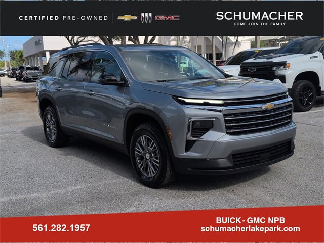 Certified. Sterling Gray Metallic 2025 Chevrolet Traverse LT 1LT FWD 8-Speed Automatic 2.5L DOHCWE DELIVER TO YOUR HOME OR OFFICE !! Driver Confidence Package (HD Surround Vision, Power Outlet, Rear Pedestrian Alert, and Traffic Sign Recognition), Preferred Equipment Group 1LT, Chevrolet Certified Pre-Owned Certified, 3rd row seats: split-bench, 4-Way Manual Front Passenger Seat Adjuster, 4-Wheel Disc Brakes, 6 Speakers, 6-Speaker Audio System Feature, 8-Way Power Driver Seat Adjuster, ABS brakes, Air Conditioning, Alloy wheels, AM/FM radio: SiriusXM with 360L, Apple CarPlay/Android Auto, Auto High-beam Headlights, Automatic temperature control, Brake assist, Bumpers: body-color, Child-Seat-Sensing Airbag, Compass, Delay-off headlights, Driver door bin, Driver vanity mirror, Dual front impact airbags, Dual front side impact airbags, Electronic Stability Control, Emergency communication system: OnStar, Four wheel independent suspension, Front anti-roll bar, Front Bucket Seats, Front Center Armrest, Front dual zone A/C, Front reading lights, Fully automatic headlights, Heated door mirrors, Heated front seats, Heated steering wheel, Illuminated entry, Low tire pressure warning, Navigation System, Occupant sensing airbag, Outside temperature display, Overhead airbag, Overhead console, Panic alarm, Passenger door bin, Passenger vanity mirror, Power door mirrors, Power driver seat, Power Liftgate, Power steering, Power windows, Premium Cloth Seat Trim, Radio data system, Radio: : Audio System w/17.7 Diagonal Display, Rear air conditioning, Rear anti-roll bar, Rear reading lights, Rear window defroster, Rear window wiper, Remote keyless entry, Security system, SiriusXM with 360L Trial Subscription, Speed control, Speed-sensing steering, Spoiler, Steering wheel mounted audio controls, Tachometer, Telescoping steering wheel, Tilt steering wheel, Traction control, Trip computer, Turn signal indicator mirrors, Variably intermittent wipers, Voltmeter, and Wheels: 18 Grazen Metallic Machined-Face Aluminum. Odometer is 13355 miles below market average! 20/27 City/Highway MPGChevrolet Certified Pre-Owned Details:* Limited Warranty: 12 Month/12,000 Mile (whichever comes first) from certified purchase date* 172 Point Inspection* Transferable Warranty* Powertrain Limited Warranty: 72 Month/100,000 Mile (whichever comes first) from original in-service date* 24 months/24,000 miles (whichever comes first) Certified Pre-Owned Scheduled Maintenance Plan and 3 days/150 miles (whichever comes first) Vehicle Exchange Program. SiriusXM 3-month trial subscription.* Warranty Deductible: $0* Vehicle History* Roadside Assistance