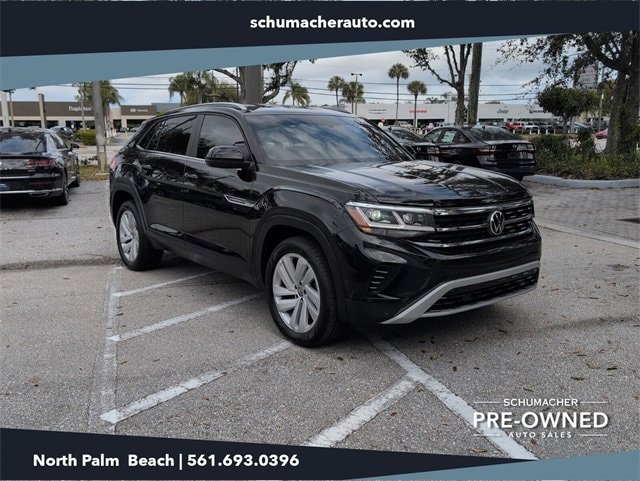 Certified. Deep Black 2021 Volkswagen Atlas Cross Sport 3.6L V6 SE w/Technology FWD 8-Speed Automatic with Tiptronic 3.6L VR6WE DELIVER TO YOUR HOME OR OFFICE !! Volkswagen Certified Pre-Owned Certified, 3.60 Axle Ratio, 4-Wheel Disc Brakes, 6 Speakers, ABS brakes, Air Conditioning, Alloy wheels, AM/FM radio: SiriusXM with 360L, Auto-dimming Rear-View mirror, Automatic temperature control, Brake assist, Bumpers: body-color, Compass, Delay-off headlights, Driver door bin, Driver vanity mirror, Dual front impact airbags, Dual front side impact airbags, Electronic Stability Control, Emergency communication system: VW Car-Net services (capabilities require enrollment or subscription), Exterior Parking Camera Rear, Four wheel independent suspension, Front anti-roll bar, Front Bucket Seats, Front Center Armrest, Front dual zone A/C, Front fog lights, Front reading lights, Fully automatic headlights, Heated Comfort Front Bucket Seats, Heated door mirrors, Heated front seats, Illuminated entry, Leather Shift Knob, Low tire pressure warning, Occupant sensing airbag, Outside temperature display, Overhead airbag, Overhead console, Panic alarm, Passenger door bin, Passenger vanity mirror, Perforated V-Tex Leatherette Seating Surfaces, Power door mirrors, Power driver seat, Power Liftgate, Power steering, Power windows, Radio data system, Radio: MIB3 Composition Media w/8 Touchscreen, Rain sensing wipers, Rear anti-roll bar, Rear reading lights, Rear seat center armrest, Rear window defroster, Rear window wiper, Remote keyless entry, Roof rack: rails only, Security system, Speed control, Speed-sensing steering, Split folding rear seat, Spoiler, Standard Suspension, Steering wheel mounted audio controls, Tachometer, Telescoping steering wheel, Tilt steering wheel, Traction control, Trip computer, Turn signal indicator mirrors, Variably intermittent wipers, and Wheels: 20 5-Spoke Silver Alloy (CQ0) Odometer is 12599 miles below market average!Volkswagen Certified Pre-Owned Details:* Warranty Deductible: $50* Roadside Assistance* Vehicle History* Model Year 2020 and Newer Vehicles: 2-Year or 24,000-Mile (whichever occurs first) Comprehensive Limited Warranty. Model Year 2019 Vehicles: 1-Year or 12,000-Mile (whichever comes first) Comprehensive Limited Warranty. Electric Vehicles Model Year 2019 & Newer: 3-Year or 36,000-Mile (whichever comes first) Comprehensive Limited Warranty. 2 Years of 24-Hour Roadside Assistance, Three Months of SiriusXM Platinum Plan Trial Subscription.* 100+ Point Inspection